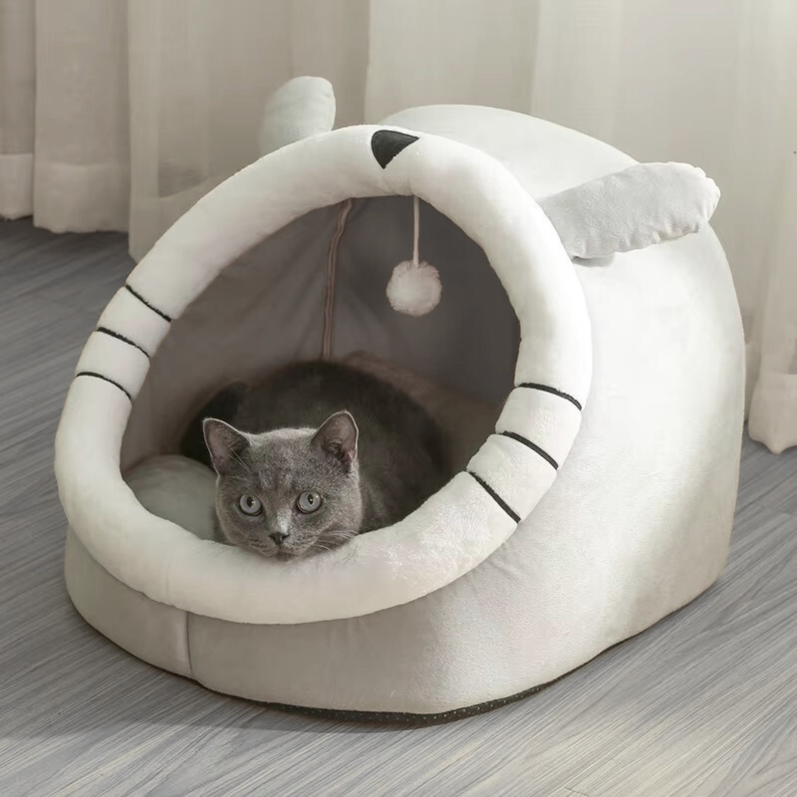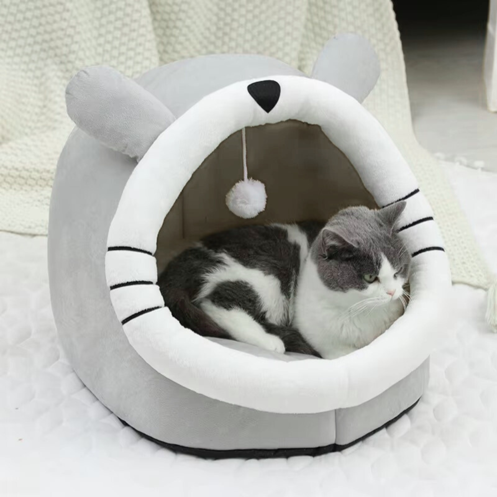 سرير قطط مُغلَّف ومُصمَّم على شكل كهف - ناعم وأنيق وآمن