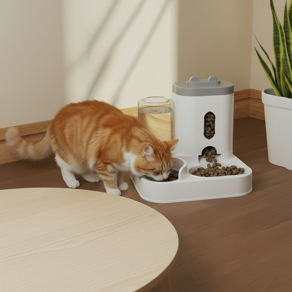 موزع طعام وماء أوتوماتيكي للقطط يعمل بالجاذبية