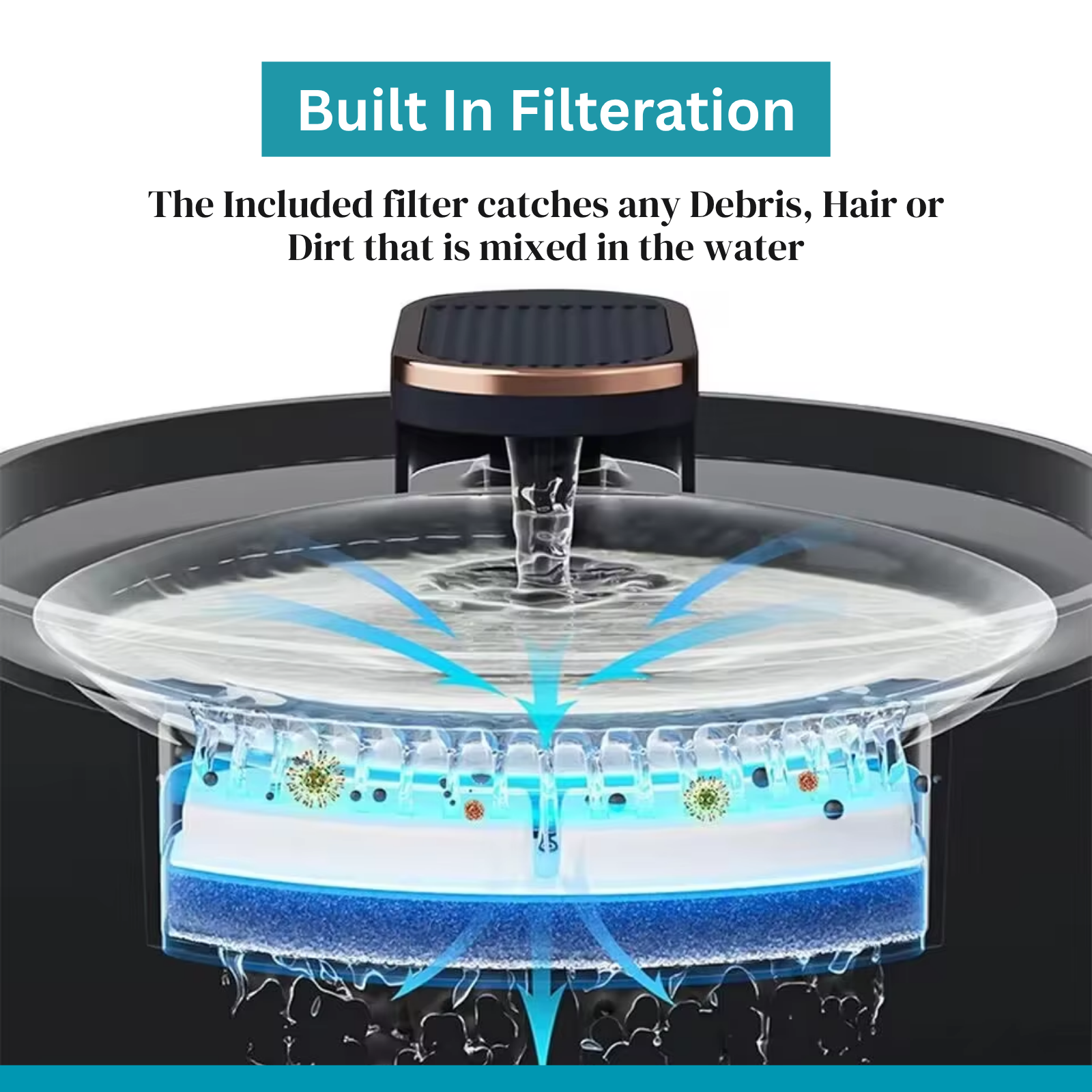 - نظام الترشيح المدمج: يحبس الشعر والغبار والحطام للحصول على مياه نظيفة باستمرار.