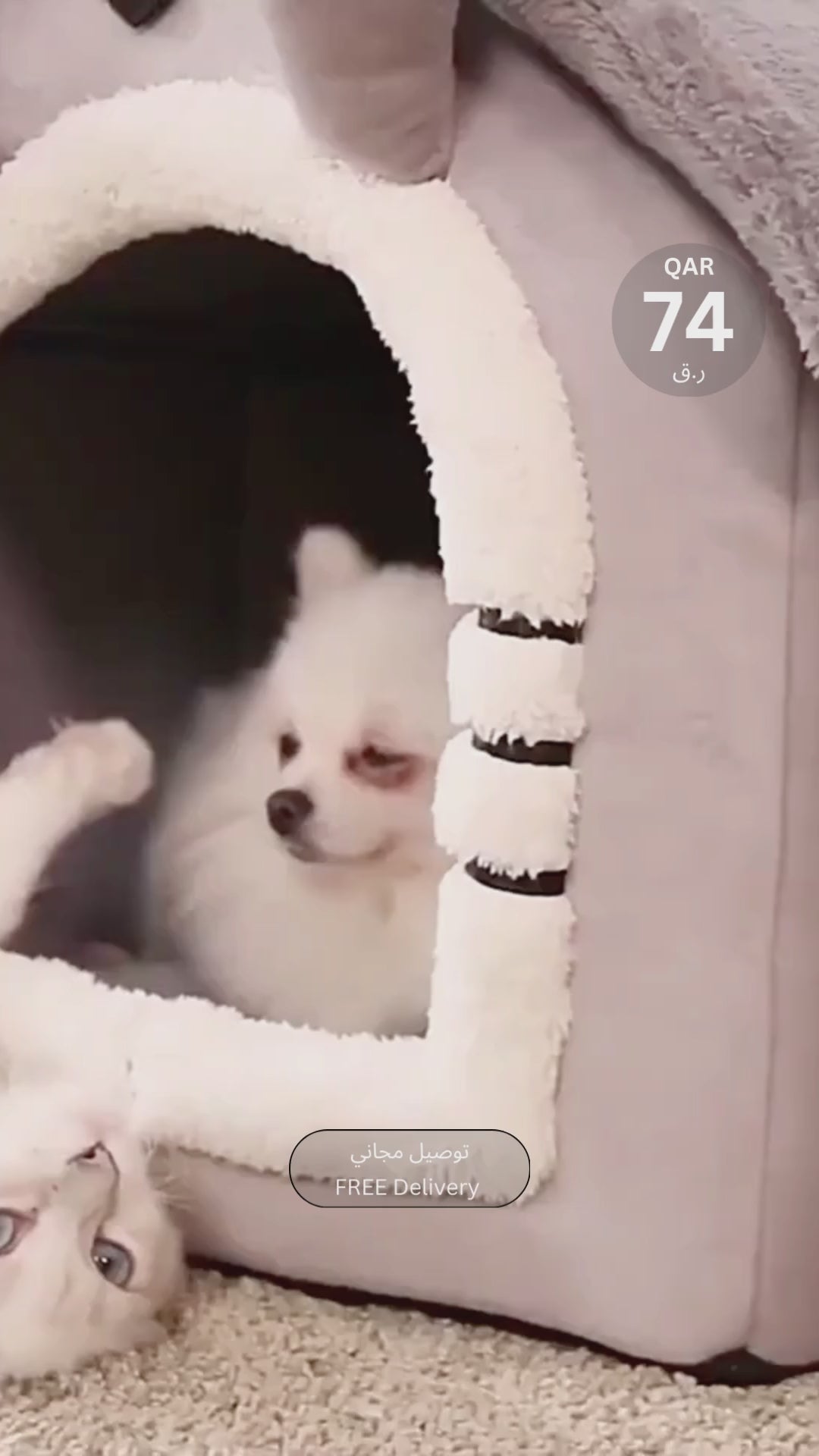 امنح قطتك ملاذًا مثاليًا مع هذا المنزل الداخلي المريح للقطط، المصمم لتوفير الدفء والراحة والخصوصية. جدرانه الناعمة والمخملية توفر مساحة آمنة لقطتك للنوم أو الاختباء أو الاسترخاء، مما ينسجم تمامًا مع أي ديكور منزلي.